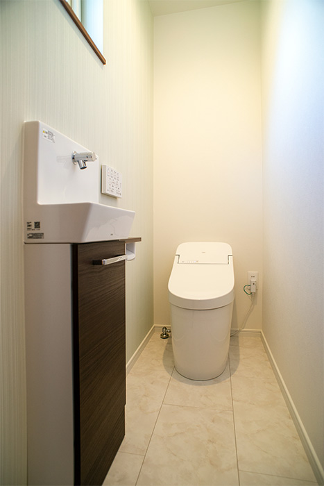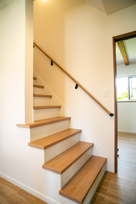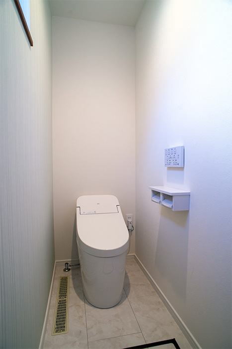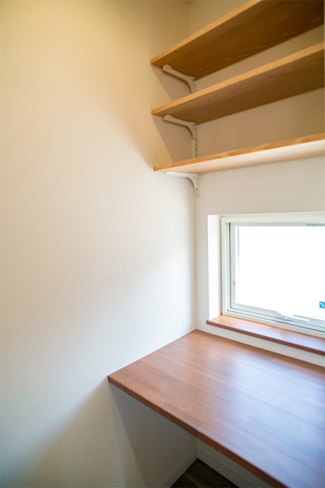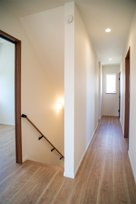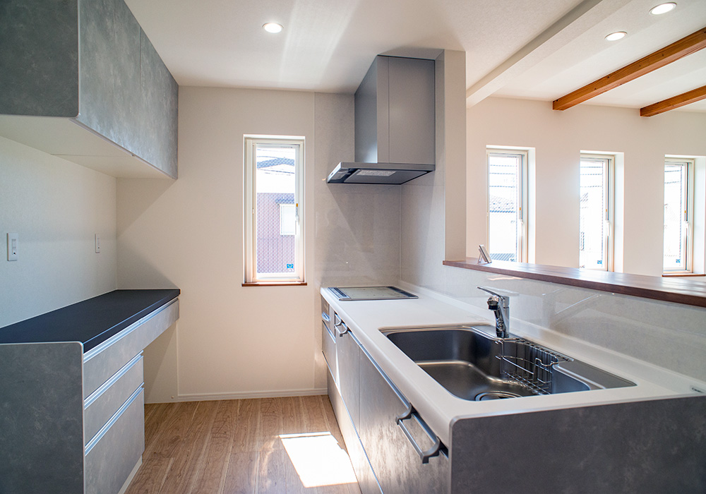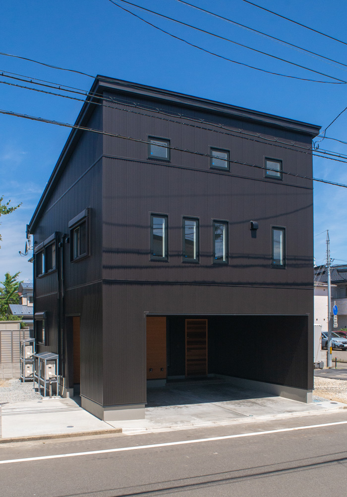 所在地:秋田県秋田市 完成:2022年7月 構造・用途:新木造軸組工法・戸建 工事種別:新築 敷地面積:108.53m²(32.83坪) 延床面積:115.92m²(35.06坪) UA値:0.34W/m²・K C値:0.3cm²/m²