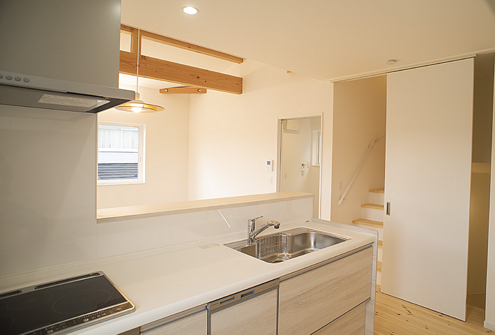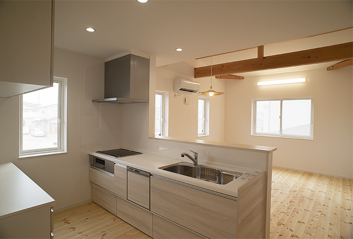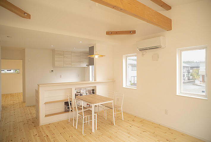 所在地:秋田県秋田市 完成:2020年10月 構造・用途:新木造軸組工法・戸建 工事種別:新築 敷地面積:112.66m²(34.07坪) 延床面積:110.95m²(33.56坪) UA値:0.34W/m²・K C値:0.3cm²/m²