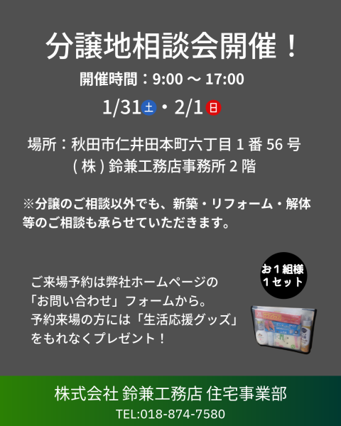 分譲地相談会のご案内 1月31日(土)・2月1日(日)開催!